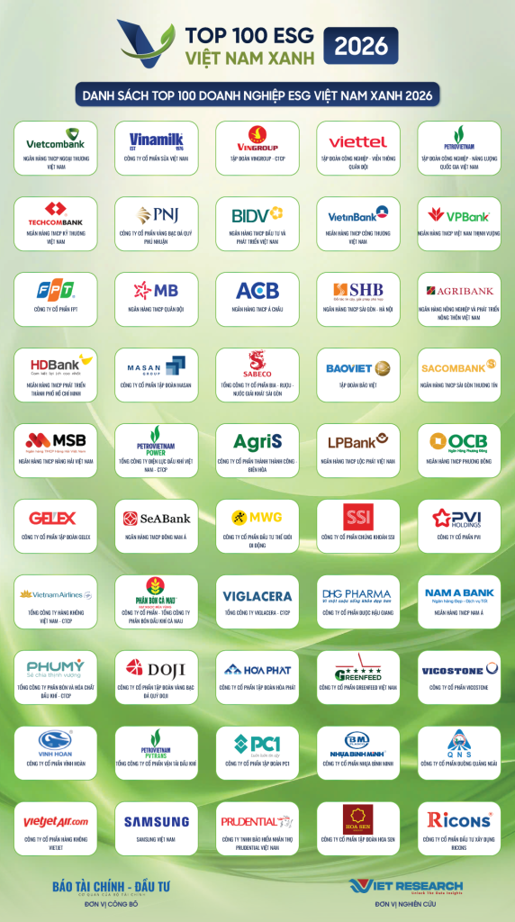 Công bố Top 100 Doanh nghiệp ESG Việt Nam Xanh 2026